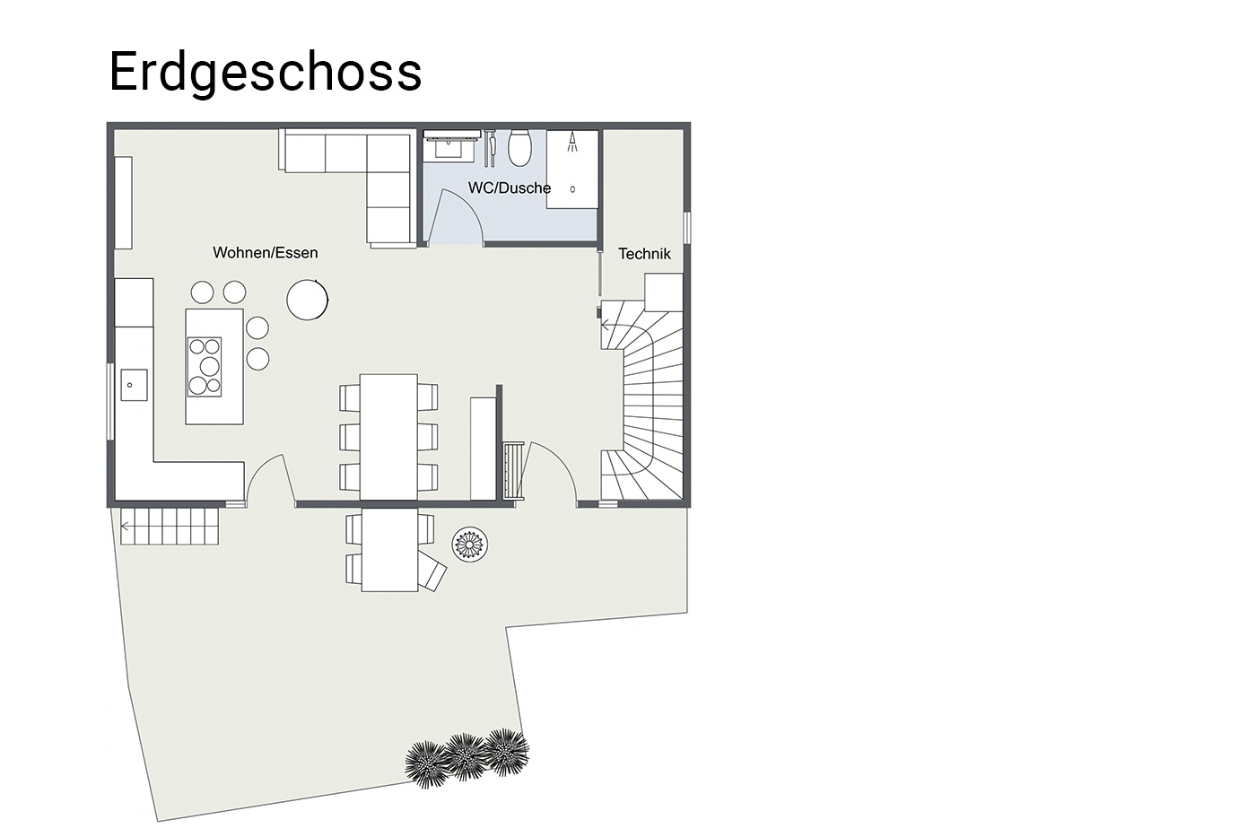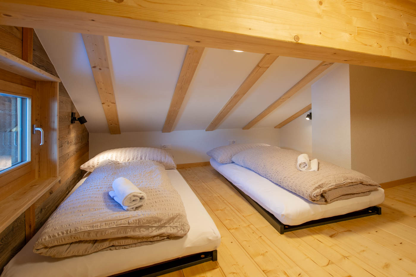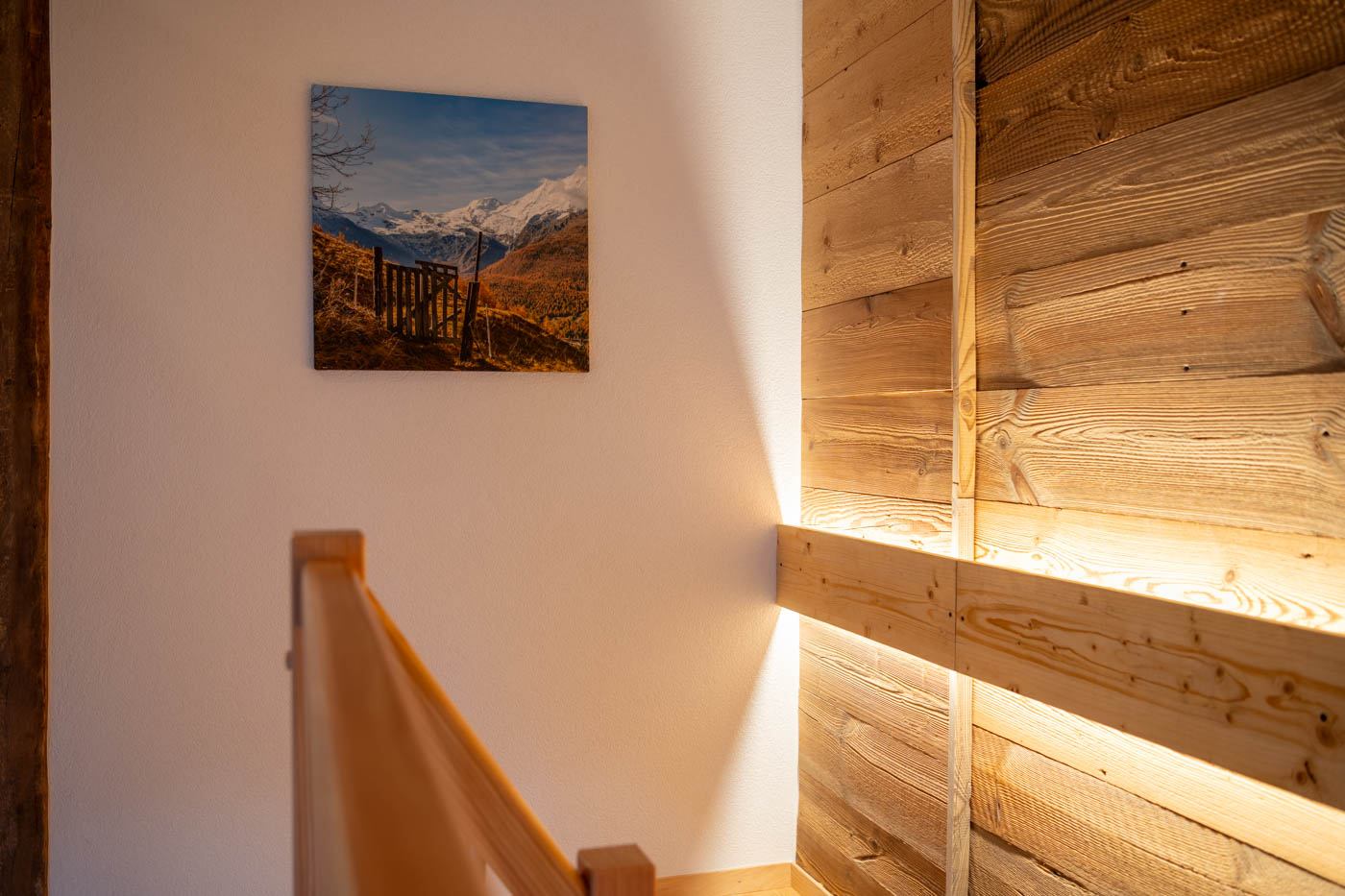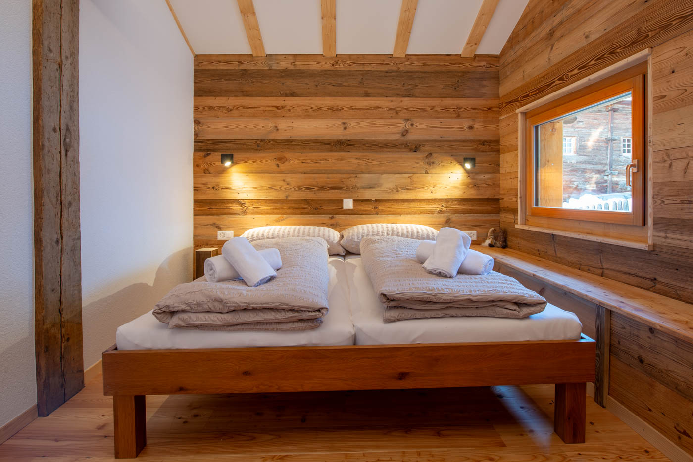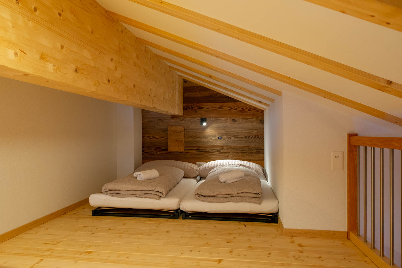 Der Stall bietet Platz für bis zu 8 Personen. Ideal geeignet für Ferien mit der ganzen Familie. Der offene Wohn-/Essbereich wird durch eine moderne, voll ausgestattete Küche abgerundet.