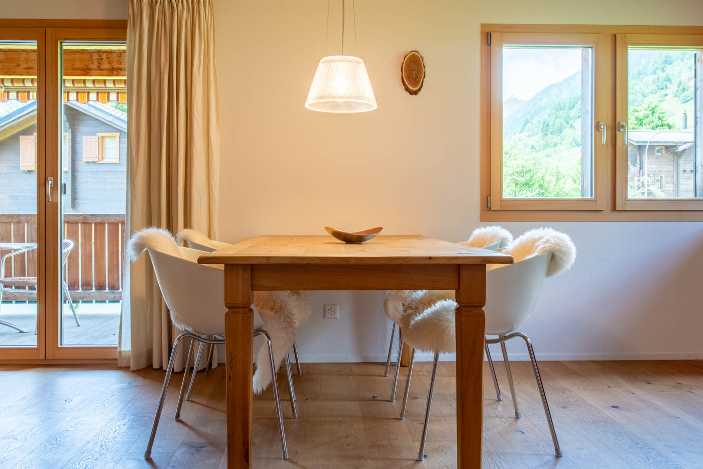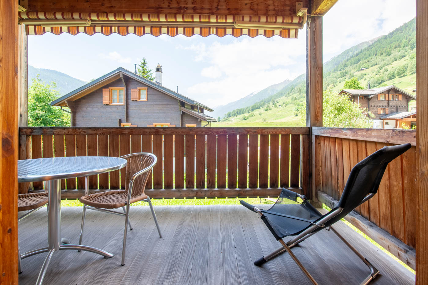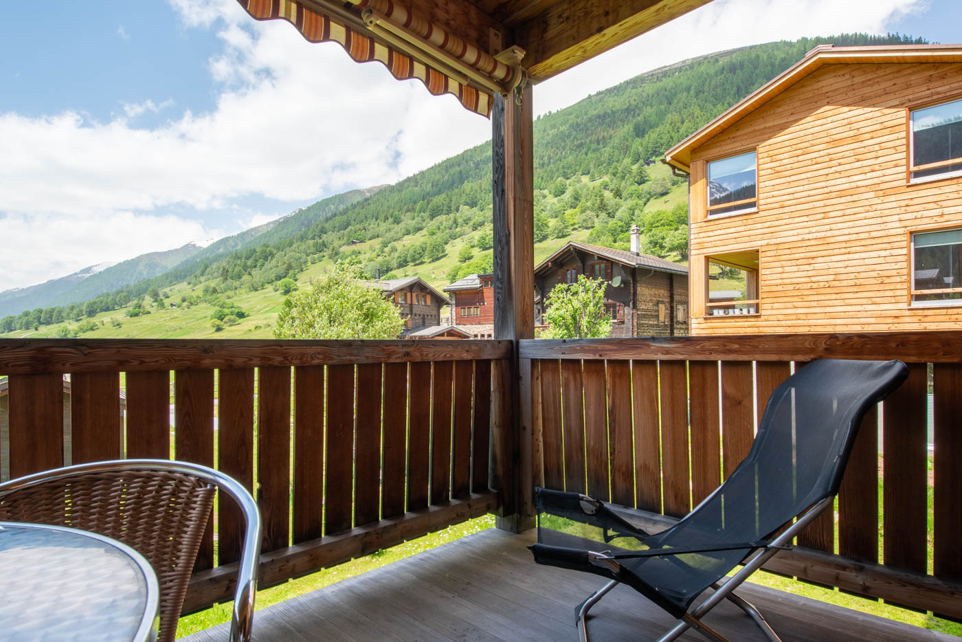 Geniessen Sie vom Balkon die herrliche Aussicht auf die umliegende Walliser Bergwelt und lassen Sie Ihre Seele baumeln.