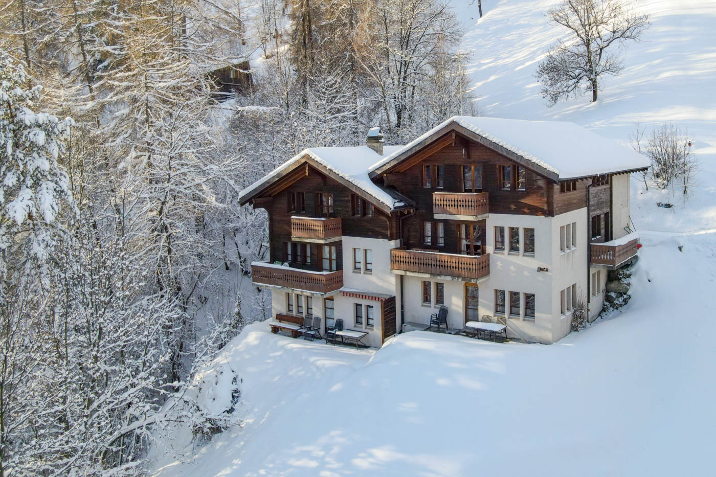 Es erwartet Sie eine schöne, lichtdurchflutete 3.5-Zimmer-Ferienwohnung (75m2) in einem gepflegten Chalet am Sonnenhang von Lax. Auf gleich zwei Balkonen gibt es ausreichend Gelegenheit, die tolle Aussicht auf die umliegende Bergwelt zu geniessen. Das Chalet Pantke liegt etwas oberhalb von Lax und ist ein idealer Ausgangspunkt, um die umliegenden Tourismusdestinationen wie die Aletsch Arena oder das Goms sowie weitere Ausflugsziele zu entdecken.