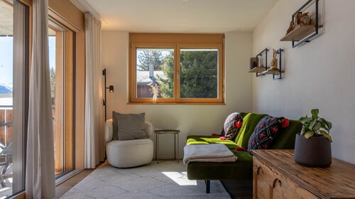 Auf dem Balkon in Richtung Dorf und Tal gerichtet, können Sie die Sonnenstunden im Goms geniessen und Ihre Blicke in die Ferne schweifen. Der Einstieg zur Loipe Goms oder auf die Wander- und Bikewege ist etwa 50m vom Haus entfernt.